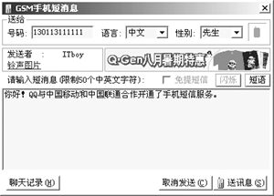 目前IM與各種移動(dòng)終端設(shè)備的結(jié)合也越來越多。使用QQ向手機(jī)發(fā)送短信需要手機(jī)開通移動(dòng)QQ服務(wù),單擊對方頭像圖標(biāo),在打開的快捷菜單中選擇“手機(jī)短訊”命令,在打開的對話框中輸入信息,然后點(diǎn)擊發(fā)送即可完成,這時(shí)對方的手機(jī)就可以收到一個(gè)消息。給BP機(jī)發(fā)短訊也是一樣,不過對方的BP機(jī)服務(wù)臺必須是QQ所支持的情況下才行。當(dāng)對方的手機(jī)收到你發(fā)來的短信后還可以回復(fù),這時(shí)候您的QQ會彈出“查看手機(jī)短訊”的窗口來,非常方便。