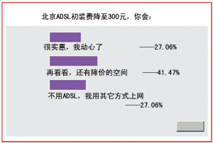 2002年12月,中國網通北京通信公司發(fā)起了一次降價活動,先是將原定今年12月20日到期的512k ADSL上網費的半價優(yōu)惠向后延續(xù)半年期限,緊接著,ADSL初裝費從最初的1300元降至300元,降幅達千元,動作之大、降幅之高,令業(yè)界嘩然。不難發(fā)現,DSL不僅要延續(xù)原有的市場分額,還要搶占Cable Modem與以太網的半壁江山|