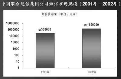“從2001年的189億條增長(zhǎng)到2002年的超過(guò)900億條,我國(guó)短信業(yè)務(wù)的增長(zhǎng)率是移動(dòng)用戶(hù)數(shù)增長(zhǎng)率的3.4倍。” 計(jì)世資訊分析師許牧說(shuō)。
