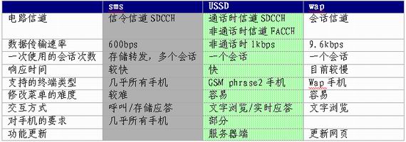 USSD可以提供比短消息更為復(fù)雜的無線業(yè)務(wù),也就意味著業(yè)務(wù)的開發(fā)和部署更加復(fù)雜。基于GSM的USSD技術(shù)的出現(xiàn)和成熟,解決了WAP方式交易成本高和SMS(短消息)方式無法實(shí)現(xiàn)業(yè)務(wù)交互流程、表達(dá)能力差的弱點(diǎn),提供了面向連接的透明傳輸通道。