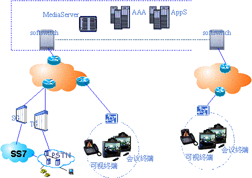 該方案除了提供點(diǎn)對(duì)點(diǎn)可視業(yè)務(wù),還能充分利用軟交換設(shè)備的互通能力,可視終端可以和PSTN網(wǎng)絡(luò)進(jìn)行互通,以及和其它的IAD終端進(jìn)行互通,避免了單獨(dú)建立一個(gè)可視網(wǎng)絡(luò)而帶來(lái)的經(jīng)營(yíng)風(fēng)險(xiǎn)。