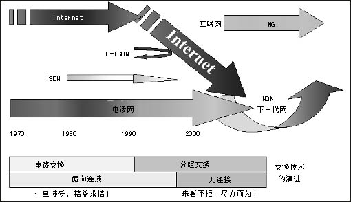 傳統(tǒng)電信網(wǎng)和互聯(lián)網(wǎng)都面臨著挑戰(zhàn),基于電話業(yè)務設計的電路交換網(wǎng)不能靈活適應帶寬各異的數(shù)據(jù)業(yè)務的發(fā)展。專為數(shù)據(jù)業(yè)務設計的互聯(lián)網(wǎng)則存在著安全性、可管理性、商業(yè)模式等問題的困擾。NGI對目前電信網(wǎng)的主要盈利業(yè)務語音的質量保證以及對電信網(wǎng)增長空間很大的業(yè)務(移動)關注不夠。NGI可能達到的目標不能滿足電信界的需要。因此,在NGI之后ITU和ETSI等提出了更高的目標——NGN,這就是NGN的提出背景。信息產業(yè)部電信研究院科技委副主任委員雷震洲認為,兩大亮點點燃了NGN:一是數(shù)據(jù)超過語音的信息需求,全球互聯(lián)網(wǎng)用戶目前已逾7億,全世界在網(wǎng)上傳送的以IP為代表的數(shù)據(jù)業(yè)務量已經(jīng)超過語音業(yè)務量;二是移動超過固定的個性化需求,全球移動用戶已經(jīng)超過13億,近100個國家的移動用戶數(shù)已經(jīng)超過固定用戶數(shù),我國在2003年10月移動用戶也超過了固定用戶數(shù)。