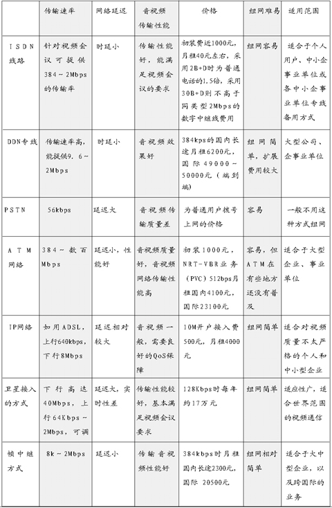 對于通信量較少、通信時間較短的用戶,選用ISDN的費用遠低于租用DDN專線或幀中繼電路的費用,而且具有速率高、投資少、聯(lián)網(wǎng)方便等特點,能滿足基本會議電視系統(tǒng)的應用要求。但全國ISDN網(wǎng)絡還處在不斷升級階段,可靠性和穩(wěn)定性相對于專線方式還有不足。