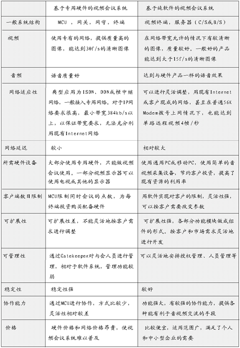 專用硬件與純軟件的視頻會議系統(tǒng)