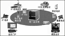 實(shí)現(xiàn)調(diào)度、呼叫處理、網(wǎng)絡(luò)會(huì)議的軟件(通過(guò)門(mén)戶網(wǎng)站,Microsoft Outlook,Web瀏覽器等);管理和目錄服務(wù)軟件;軟件或硬件終端;多標(biāo)準(zhǔn)支持,如:H.323、H.320、SIP、ISDN、IP;媒體處理硬件(會(huì)議橋和網(wǎng)關(guān))。