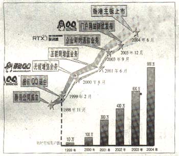 正是憑借著這些優(yōu)勢(shì),即時(shí)通信吸引聚集著一些忠誠(chéng)用戶,并開始搭建網(wǎng)絡(luò)廣告、無(wú)線增值等一系列各種潛在的交易平臺(tái)。可以想象,一個(gè)絕佳的聊天窗口同時(shí)也是一個(gè)方便的交易窗口和暢通的付費(fèi)入口,即時(shí)通信正在摸索一條前所未有的盈利模式。有專家指出,經(jīng)過近5年的曲折前行,即時(shí)通信的盈利模式將在2005年逐步明確。以騰訊QQ為例,我們來剖析一下即時(shí)通信的盈利模式是如何由模糊走向清晰的。從1999年2月QQ發(fā)布到2000年5月,QQ迅速聚攏了10萬(wàn)用戶。2000年8月,騰訊公司同廣東移動(dòng)合作,僅僅用了一年就扭虧為盈,實(shí)現(xiàn)了1000萬(wàn)人民幣的純利潤(rùn)。