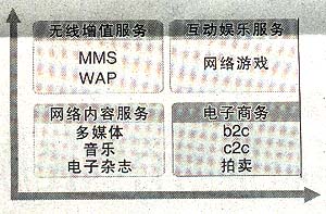 其中,互聯(lián)網(wǎng)及增值業(yè)務(wù)包括兩部分,核心業(yè)務(wù)主要是即時(shí)通信服務(wù),包括傳輸文本信息、圖像、視頻、音頻以及會(huì)員服務(wù)、號(hào)碼服務(wù)、電子郵件等;另外還有娛樂資訊門戶的建設(shè),包括向用戶提供新聞、體育、娛樂等多類資訊,還包括游戲中心、交友中心、校友錄、電子賀卡等多種娛樂服務(wù)。