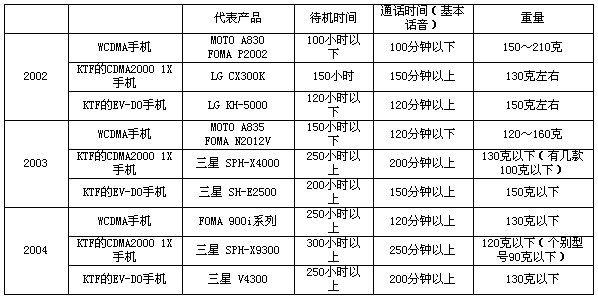 表3 KTF的CDMA2000 1X與EV-DO手機基本性能對比