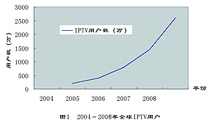 圖1 2004-2008年全球IPTV用戶發(fā)展預測