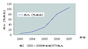 圖2 2003-2007年全球IPTV業(yè)務收入預測