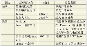 加拿大和美國IPTV運營商的經營情況如表2和表5。