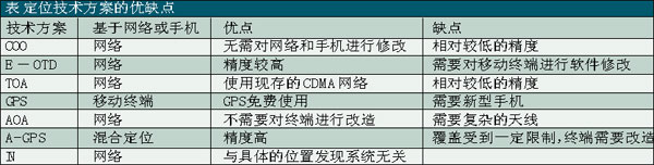 基于移動終端的定位技術(shù)包括全球定位系統(tǒng)——GPS、基于移動終端信號發(fā)送和接收的時戳或角度的技術(shù)——E-OTD(增強觀測時間差分)/TOA(到達時間),以及來源蜂窩小區(qū)——COO技術(shù)(還有所謂的輔助GPS—A-GPS技術(shù)作為對COO技術(shù)的補充)。