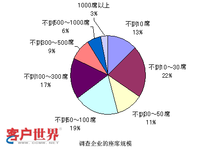 那么和剛才雜志社調(diào)查的結(jié)果是一樣的。這個(gè)數(shù)字又是政府方面調(diào)查的結(jié)果,他們調(diào)查的很細(xì),對很小規(guī)模的,比如說1-4人的呼叫中心都進(jìn)行了調(diào)查,并且看到這種小規(guī)模的呼叫中心還占有很大的比例?梢钥吹,10人以下的呼叫中心可能在這個(gè)結(jié)果里面占了基本上高于50%,所以可能得到一個(gè)結(jié)論,就是在日本小型的呼叫中心非常多。