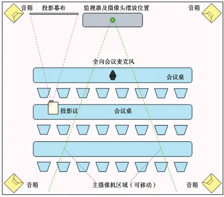 會(huì)場(chǎng)設(shè)計(jì)的好壞是視頻會(huì)議系統(tǒng)實(shí)施成敗的關(guān)鍵。視頻會(huì)議系統(tǒng)并不單純是將幾個(gè)視頻交換平臺(tái)和終端通過網(wǎng)絡(luò)連接起來就可以順利運(yùn)行了,需綜合考慮會(huì)場(chǎng)的網(wǎng)絡(luò)環(huán)境、位置及大小、燈光和電源等因素,才能在會(huì)議音視頻質(zhì)量、會(huì)議功能、操作簡(jiǎn)便性及穩(wěn)定性等方面發(fā)揮最優(yōu)的功能。