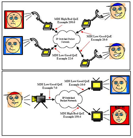factor,都能夠在MDI定量和實(shí)時獲得的抖動和丟包信息基礎(chǔ)上推算出來。網(wǎng)絡(luò)的入口、出口以及重要的路由器都可以設(shè)置MDI監(jiān)控,采集的信息被送到網(wǎng)絡(luò)監(jiān)管中心,提醒業(yè)務(wù)提供商語音和視頻業(yè)務(wù)的動態(tài)質(zhì)量,設(shè)置能預(yù)測MDI狀況。