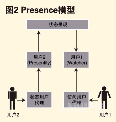 Presence用以傳達(dá)用戶狀態(tài)以及用戶通過一組設(shè)備進行通信的能力,如:聯(lián)機、忙碌、離開、脫機等狀態(tài)。這些狀態(tài)信息反映出與該用戶與其他用戶實現(xiàn)通信的可能性。