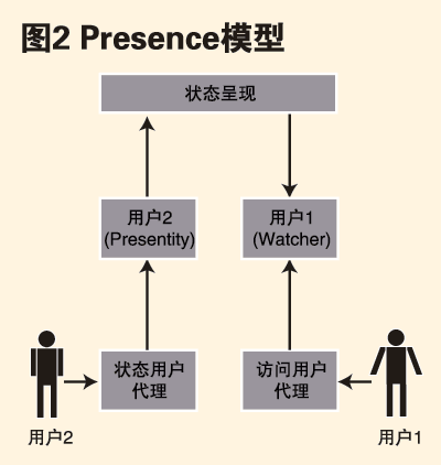 Presence用以傳達用戶狀態(tài)以及用戶通過一組設備進行通信的能力,如:聯(lián)機、忙碌、離開、脫機等狀態(tài)。這些狀態(tài)信息反映出與該用戶與其他用戶實現(xiàn)通信的可能性。