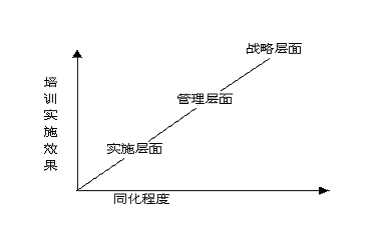 為了確保培訓(xùn)實施效果能達到預(yù)期的效果及水平即達到預(yù)期的認識水平,來自于管理層的執(zhí)行力必不可少,任何一項培訓(xùn)工作如果不能自下而下的進行“洗腦”即同化過程,很難保證培訓(xùn)效果。簡言之,我們需要從戰(zhàn)略角度到管理層面直到實施層面的同化過程。