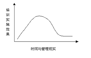從圖一我們得知,在培訓(xùn)實施認識之初,企業(yè)對于培訓(xùn)需求的同化程度越高,培訓(xùn)實施效果就會越好,反之若是我們的同化層面只停留在實施層面,得不到管理層、戰(zhàn)略層的同化支持自然培訓(xùn)效果不能長久,只能達到一個短時間的定向認識,隨著時間與現(xiàn)實的變化,培訓(xùn)效果則會一蹶不振。(見圖二)