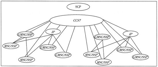 移動智能網的組網有多種方案,目前傾向的組網方案是通過OVERLAY方式,在不改變現(xiàn)有移動通信網的條件下,通過增加有限的SSP,利用特殊號碼段觸發(fā)智能業(yè)務的方式來實現(xiàn)全網開通智能業(yè)務的目的。而目標網方式則要求把所有MSC端局都升級成為具有SSF功能的MSC,通過用戶登記的業(yè)務簽單信息來觸發(fā)智能業(yè)務。其目標網的組網圖如圖3所示。