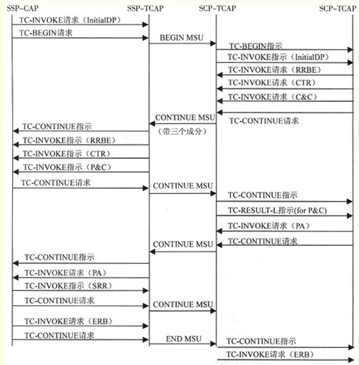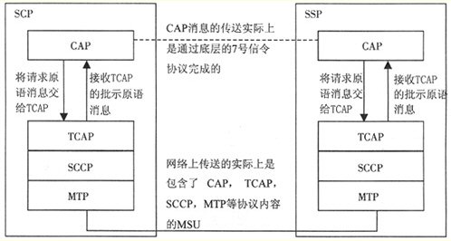 移動智能網應用部分(CAP)是遠程操作服務單元(ROSE),ROSE規(guī)程包括在TCAP成份子層中,并作為單位數(shù)據(UDT)放在SCCP中傳送。我國CAP是建立在以TCAP和SCCP為基礎的No.7信令網傳送的,CAP受限于SSP-SCP、SCP-IP之間的接口規(guī)范。