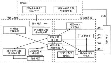 主要實現(xiàn)各類數(shù)據(jù)增值業(yè)務(wù),例如WAP業(yè)務(wù)、互聯(lián)網(wǎng)短信業(yè)務(wù)、位置應(yīng)用業(yè)務(wù)等。業(yè)務(wù)域由各業(yè)務(wù)網(wǎng)關(guān)/業(yè)務(wù)平臺產(chǎn)生CDR后,發(fā)送給計費系統(tǒng)作后續(xù)處理。例如,多媒體信息服務(wù)(MMS)的CDR由MMS