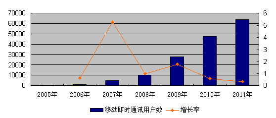 3G時代的來臨,網(wǎng)絡速度的提升,以及傳統(tǒng)互聯(lián)網(wǎng)個人IM市場的飽和,用戶需求不斷提高,使移動IM面臨著前所未有的發(fā)展良機。移動IM所蘊含的附加增值業(yè)務的巨大盈利能力,更使各大營運商和產品提供商開始這一領域上摩拳擦掌。誰掌控了移動 IM 的市場份額,誰就掌握了 3G 網(wǎng)絡時代的話語權。