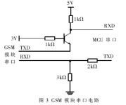 (2)串行接口電路的設計。GSM模塊的串行口(UART)使用的不是標準的TTL電平,不能與控制它的MCU串口直接相連,在它們之間要有一個電平轉換接口電路。該電路要能實現(xiàn)模塊的3V高電平與