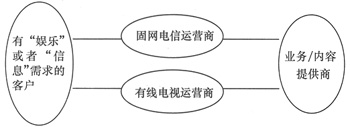 如圖1所示,雖然兩者使用的技術不同,但它們有一個相同的運營組織結構,也就是說,客戶、運營系統(tǒng)和業(yè)務/內(nèi)容提供商是它們競爭的3要素,下面將從這幾個方面對IPTV與“數(shù)字電視”的競爭做簡要的分析。