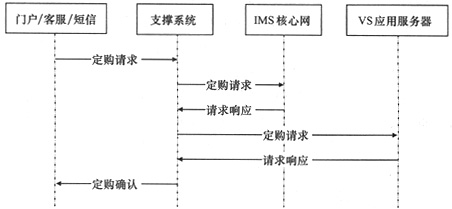 IMS網(wǎng)絡(luò)用戶為了能使用VS業(yè)務(wù),首先必須進(jìn)行VS業(yè)務(wù)的定購,業(yè)務(wù)定購流程如圖3所示,具體步驟如下。