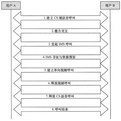 步驟1:建立語音呼叫。雙方先建立電路域的語音呼叫,由于電路域的語音呼叫直接通過核心網(wǎng)與GSM的核心網(wǎng)進(jìn)行電路域語音路由接續(xù),因此該步驟不需要VS業(yè)務(wù)網(wǎng)關(guān)參與。