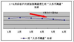 短信滿意度作為實(shí)時(shí)的客戶服務(wù)評(píng)價(jià)手段,“非常滿意”指標(biāo)體現(xiàn)出在服務(wù)過程中一線客戶代表與客戶溝通的愉悅度、忠誠度。隨著“非常滿意”及“對(duì)人員不滿意”滿意度指標(biāo)的改善,一定程度上說明一線客戶代表的服務(wù)狀態(tài)得到了有效的改善。