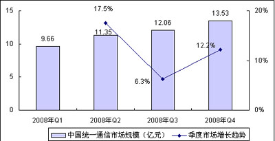 圖 1 2008年Q3中國(guó)統(tǒng)一通信整體市場(chǎng)規(guī)模