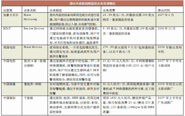 雖然數(shù)字家庭的全面實(shí)現(xiàn)還需要相當(dāng)漫長的過程,但是安防報警、視頻監(jiān)控技術(shù)將會最先在數(shù)字家庭中得到應(yīng)用。目前國內(nèi)家庭監(jiān)控市場還處于起步階段,然而3G的高帶寬將開辟家庭視頻監(jiān)控新時代,并將催生出巨大的市場商機(jī)。