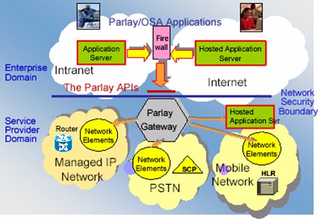 從圖中可以看到,OSA的基本思路是,把電信網(wǎng)絡(luò)的服務(wù)抽象成為一個(gè)特定的接口。這個(gè)接口的名稱現(xiàn)在被我們稱為Parlay。建立在OSA基礎(chǔ)之上的服務(wù)可以利用Parlay這個(gè)接口很容易的使用電信網(wǎng)絡(luò)中的服務(wù)而不用去關(guān)心這些接口是如何實(shí)現(xiàn)的。例如我們的一個(gè)多媒體服務(wù)希望給一個(gè)用戶發(fā)送一條短信以通知他某個(gè)事件的發(fā)生,那么這個(gè)服務(wù)需要做的是告訴Parlay這個(gè)接口需要給哪個(gè)用戶發(fā)送什么樣的內(nèi)容的信息,而不需要了解在移動(dòng)網(wǎng)絡(luò)中原來是使用SMPP這樣的協(xié)議來實(shí)現(xiàn)短信的傳送的,又或者也不用去考慮在一個(gè)IP網(wǎng)絡(luò)中我們可以用SMTP這樣的協(xié)議來實(shí)現(xiàn)他。
