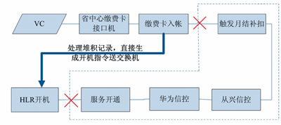 以圖4智能網(wǎng)充值開機(jī)流程為例,其經(jīng)歷的步驟繁多,特別是其中信控判斷邏輯復(fù)雜,程序處理耗時(shí)多,是引起月結(jié)用戶充值到賬但無法及時(shí)開機(jī)的關(guān)鍵環(huán)節(jié)。站在服務(wù)用戶的角度,最直接的應(yīng)急方式便是提取已繳費(fèi)入賬的號(hào)碼直接送HLR施工開機(jī),對(duì)于存在欠費(fèi)可能的用戶,其開機(jī)狀態(tài)在正常流程進(jìn)行修復(fù),但對(duì)于充值后仍欠費(fèi)的用戶,其開機(jī)狀態(tài)將在經(jīng)歷過信控后自動(dòng)被修改為停機(jī)。
