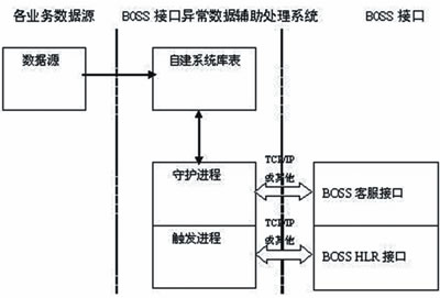 值得一提的是,作為BOSS與外圍系統(tǒng)的承接點(diǎn),接口的功能最終可歸結(jié)為對(duì)BOSS與外圍系統(tǒng)數(shù)據(jù)庫的操作。其中,主動(dòng)接口的實(shí)現(xiàn)邏輯對(duì)BOSS2.0接口監(jiān)控措施的實(shí)現(xiàn)至關(guān)重要。