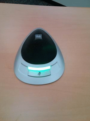 會(huì)議桌中央的控制器,用來(lái)與其他地區(qū)的網(wǎng)真進(jìn)行連接