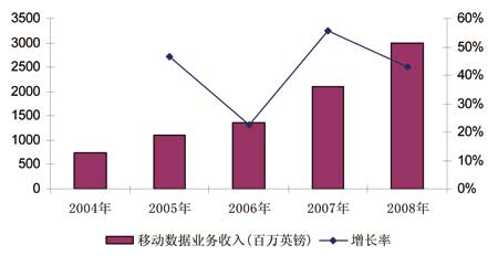 圖1 沃達豐數(shù)據(jù)業(yè)務(wù)收入情況