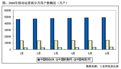 圖:2009年移動運(yùn)營商分月用戶數(shù)概況