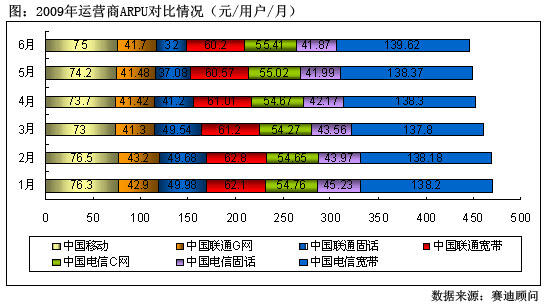 圖:2009年運(yùn)營商ARPU對比情況
