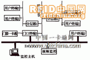 系統(tǒng)采用了兩套獨(dú)立的網(wǎng)絡(luò)系統(tǒng),第一套是基于485總線半雙工網(wǎng)絡(luò)系統(tǒng),第二套是基于以太網(wǎng)的局域網(wǎng);485總線半雙工網(wǎng)絡(luò)系統(tǒng)用以連接門口終端、分層器和用戶終端,這主要是從成本上考慮。由于這三部分交換的信息比較少,數(shù)據(jù)交換的速度要求也不是很高而且實(shí)現(xiàn)比較簡單,故采用了這種網(wǎng)絡(luò)系統(tǒng)。
