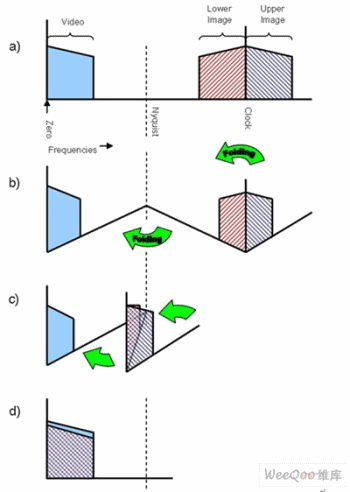 奈奎斯特頻率為時鐘頻率的一半,這是一項關(guān)鍵指標(biāo),因為在對原始模擬信號量化之前,必須把高于奈奎斯特頻率的視頻和噪聲禁止掉。如果存在高于奈奎斯特頻率的信息,它將混入低頻信號,產(chǎn)生混疊失真,從而破壞視頻信號。產(chǎn)生混疊后將無法消除,我們在后續(xù)內(nèi)容中將解釋這一點對家庭視頻系統(tǒng)的重要性。