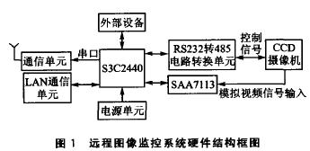 在嵌入式領(lǐng)域,ARM9系列微處理器在高性能和低功耗方面提供了最佳的性能,因此選用ARM9嵌入式處理器S3C2440設(shè)計實(shí)現(xiàn)了一個遠(yuǎn)程圖像光線監(jiān)控系統(tǒng)通過這個系統(tǒng),可以遠(yuǎn)在千里之外控制一個攝像機(jī)進(jìn)行圖像采集并回傳。如果這個攝像機(jī)有一個485接口的云臺,還可以通過互聯(lián)網(wǎng)遠(yuǎn)程控制攝像機(jī)的取景角度、鏡頭拉伸、聚焦等功能.
