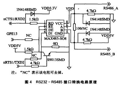 圖4中RS485的數據流方向由GPE13口的電平進行控制。