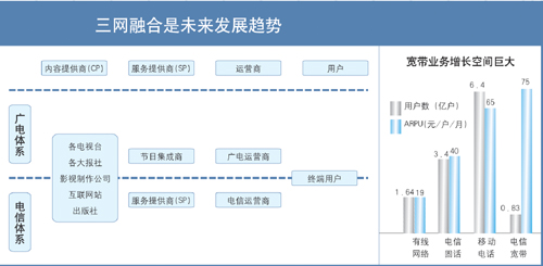 蘇少林:國(guó)家對(duì)三網(wǎng)融合的態(tài)度、目標(biāo)已很明確。其中,從2013年至2015年,總結(jié)推廣試點(diǎn)經(jīng)驗(yàn),基本形成適度競(jìng)爭(zhēng)的網(wǎng)絡(luò)產(chǎn)業(yè)格局,基本建立適應(yīng)三網(wǎng)融合的體制機(jī)制和新型監(jiān)管體系。