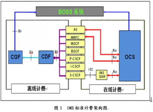 IMS在線計費涉及到的計費功能單元包括:S-CSCF、AS和MRFC。AS和MRFC具有在線計費消息觸發(fā)功能,并通過基于Diameter協(xié)議的Ro接口與OCS(在線計費系統(tǒng))進行通信。S-CSCF通過基于SIP協(xié)議的ISC接口觸發(fā)業(yè)務(wù)控制流程到IMS-GWF(IMS網(wǎng)關(guān)功能)觸發(fā)相應(yīng)的在線計費控制消息,實現(xiàn)在線計費。OCS通過Ro接口獲得在線計費請求和計費信息,對IMS用戶的網(wǎng)絡(luò)資源使用請求進行授權(quán),并進行實時的計費。
