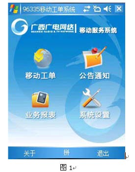 移動工單系統(tǒng)是數字電視客戶呼叫中心平臺系統(tǒng)的延伸,它結合最新的網絡移動技術,實現數字電視服務工單分派業(yè)務的自動流轉和實時流轉,各地市維護站的服務工作人員通過智能手機終端,實時獲取工作任務、計劃安排,進行業(yè)務處理,通過移動網絡查詢客戶信息、查詢用戶產品訂購資料,上報處理結果和用戶反饋信息,通過移動網絡提交到管理部門,管理層能及時的掌握服務進展情況,并能隨時做出決策和指揮,真正實現對用戶最快速、有效的服務需求響應,保證了服務質量和用戶滿意度,提升了數字電視的服務水平與服務檔次。其界面如圖1所示。