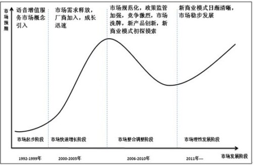 圖1:中國(guó)語(yǔ)音增值業(yè)務(wù)市場(chǎng)發(fā)展階段(資料來(lái)源:易觀)