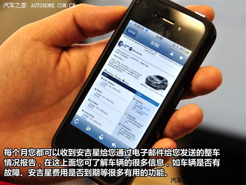 另外,隨著現(xiàn)在手機(jī)或者平板電腦的逐步興起,安吉星公司已經(jīng)開發(fā)一套無線端控制程序,您可以在您的手機(jī)或者平板電腦上安裝一個程序,之后發(fā)送一個指令短信就可以完成原來需要在車內(nèi)通過人工方式進(jìn)行的服務(wù)工作。并且未來,安吉星也會增加一些娛樂功能,如訂票或者訂餐業(yè)務(wù)。不過陪同人員也表示:“公司的核心還是以提供車輛安全保證服務(wù),更多增值服務(wù)只要我們想做隨時可以推出。而為車輛提供安全保證這項則是我們的競爭對手還沒有做到的,因此我們要先做好自己的根本工作!